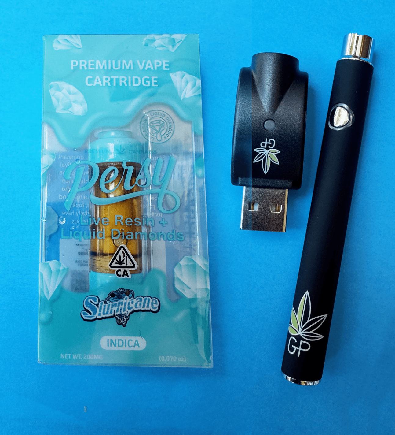 Percy Slurricane INDICA Live Resin, 2G Vape cartridge alone or w/ Battery & charger